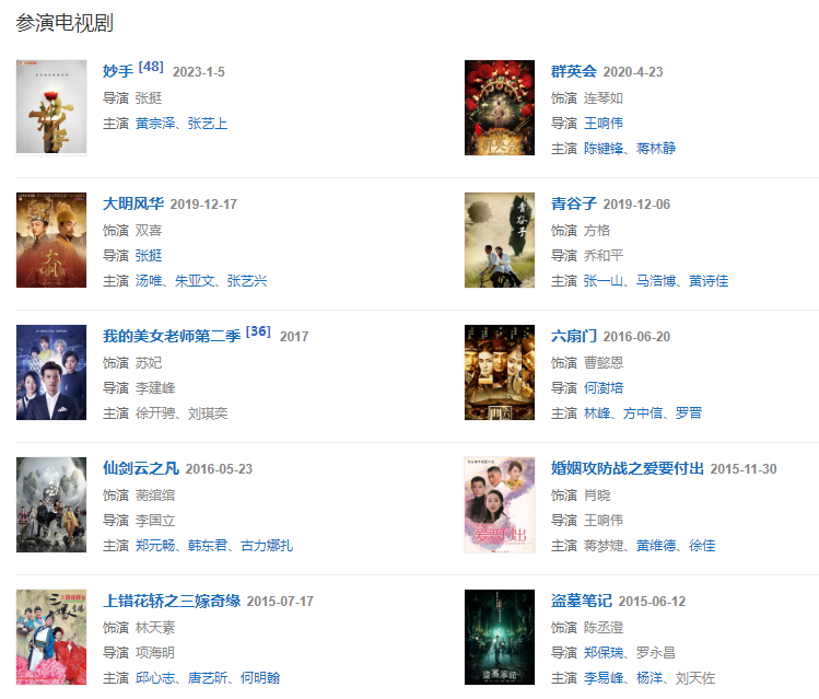 代表作品新還珠格格、艾米加油、怪俠歐陽德、隋唐英雄、神雕俠侶、盜墓筆記、六扇門、青谷子