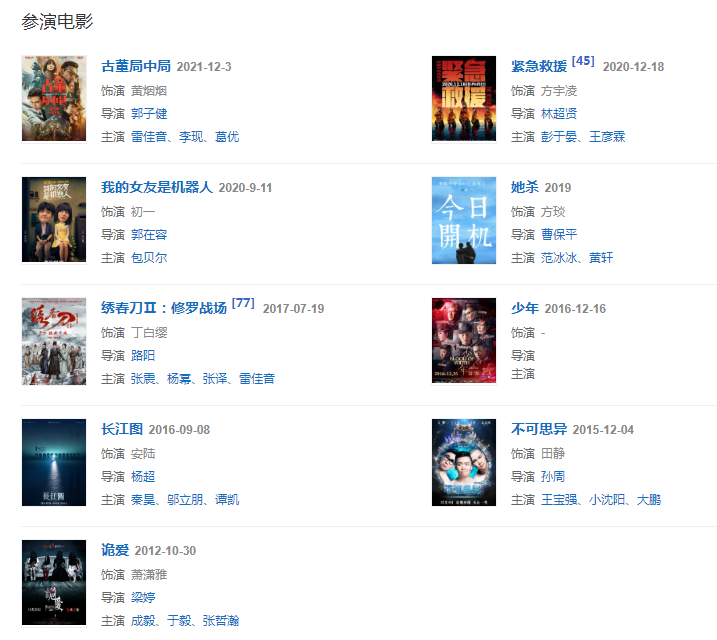 代表作品怒晴湘西、長江圖、繡春刀Ⅱ:修羅戰(zhàn)場、如懿傳、慶余年、帶著爸爸去留學(xué)、戀愛先生