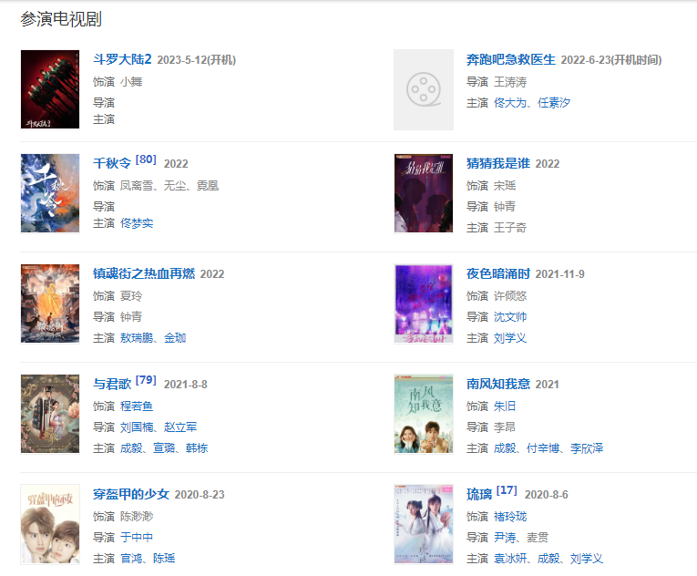 20221月,主演懸疑愛(ài)情輕喜劇《猜猜我是誰(shuí)》 ;623日,出演的都市醫(yī)療急救題材劇《奔跑吧急救醫(yī)生》開(kāi)機(jī)。