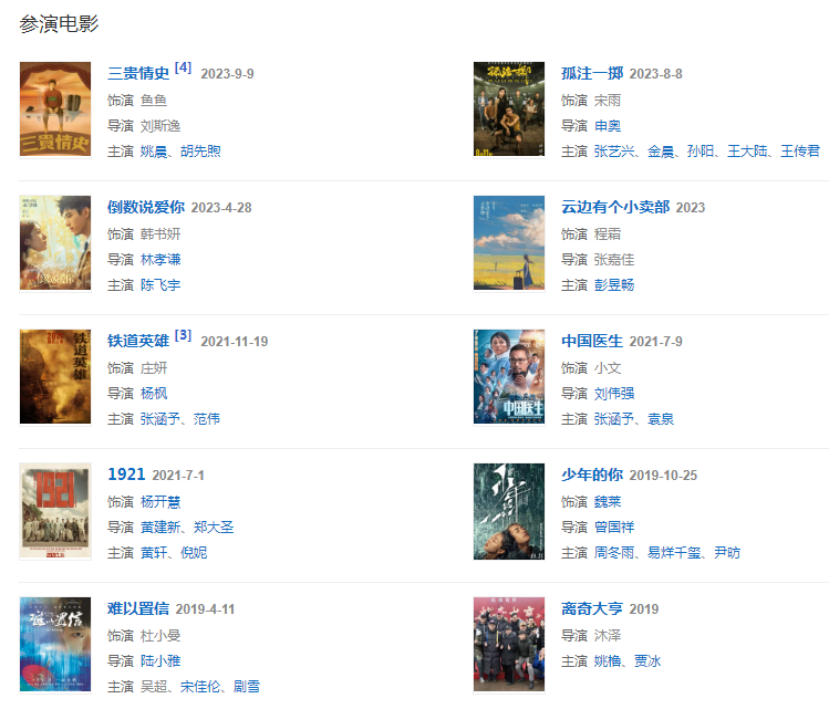 20211月,不僅出演電影《三貴情史》,還主演了抗戰(zhàn)電影《鐵道英雄》;222日,主演古裝武俠電視劇《山河令》播出;54日,主演的革命歷史劇《啊搖籃》播出 ;621日,主演的青春校園劇《陪你到世界終結(jié)》播出 [33]  71日,出演的歷史劇情電影《1921》上映;814日, 主演古裝言情劇《護心》。