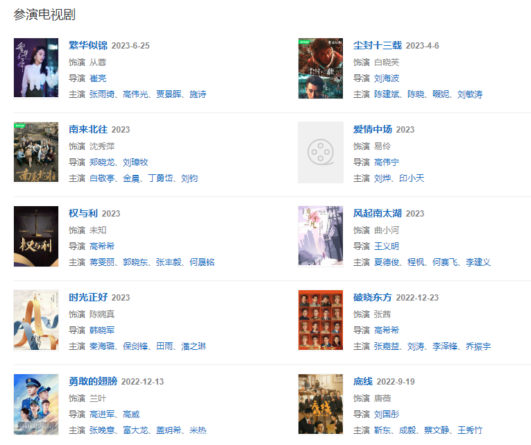 2020年,出演現(xiàn)實(shí)主義職場(chǎng)劇《平凡的榮耀》,在劇中飾演公司部門(mén)總監(jiān)余雯麗。