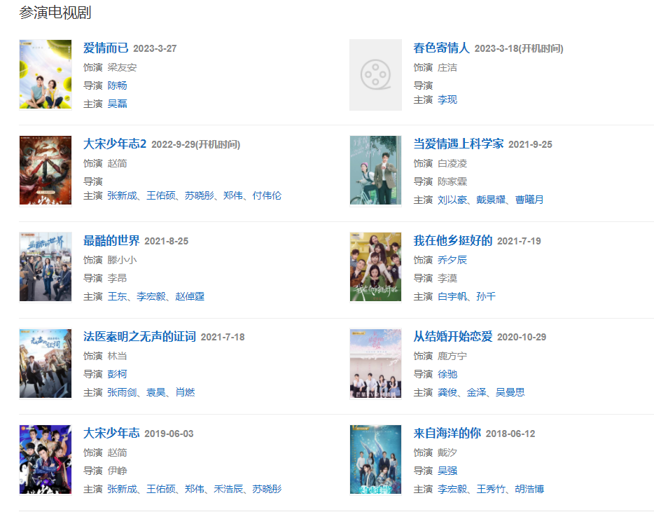 2018年4月1日,主演的超青春古裝諜戰(zhàn)熱血劇《大宋少年志》開機(jī) ;