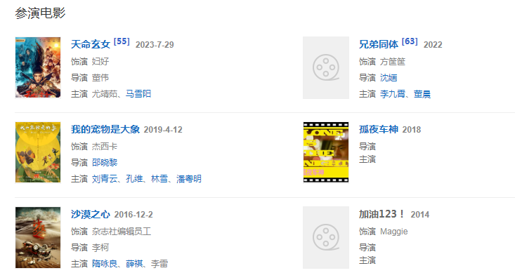 2015年,在武俠劇《秦時明月》在扮演少司命 ;同年,主演網(wǎng)劇《匆匆那年:好久不見》。