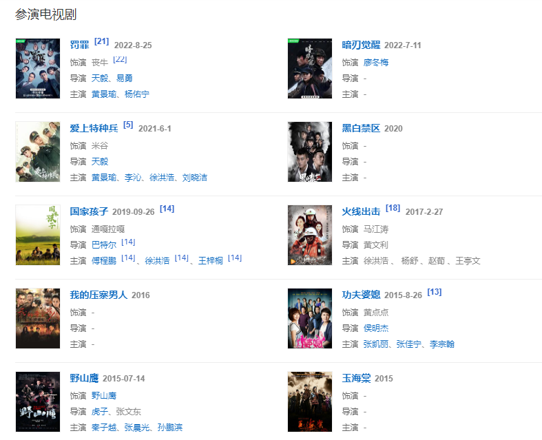 2008年,出演首部作品《利劍》。2010年,主演中國第一部展現(xiàn)隱秘戰(zhàn)線的戰(zhàn)士們生活的電視劇《冰是睡著的水》。2011年,主演劉猛執(zhí)導的軍旅題材劇《我是特種兵》。2013年,主演諜戰(zhàn)電視劇《與狼共舞2》和青春勵志軍旅偶像劇《特種兵之火鳳凰》。2020年,參演現(xiàn)代軍旅劇《親愛的戎裝》。