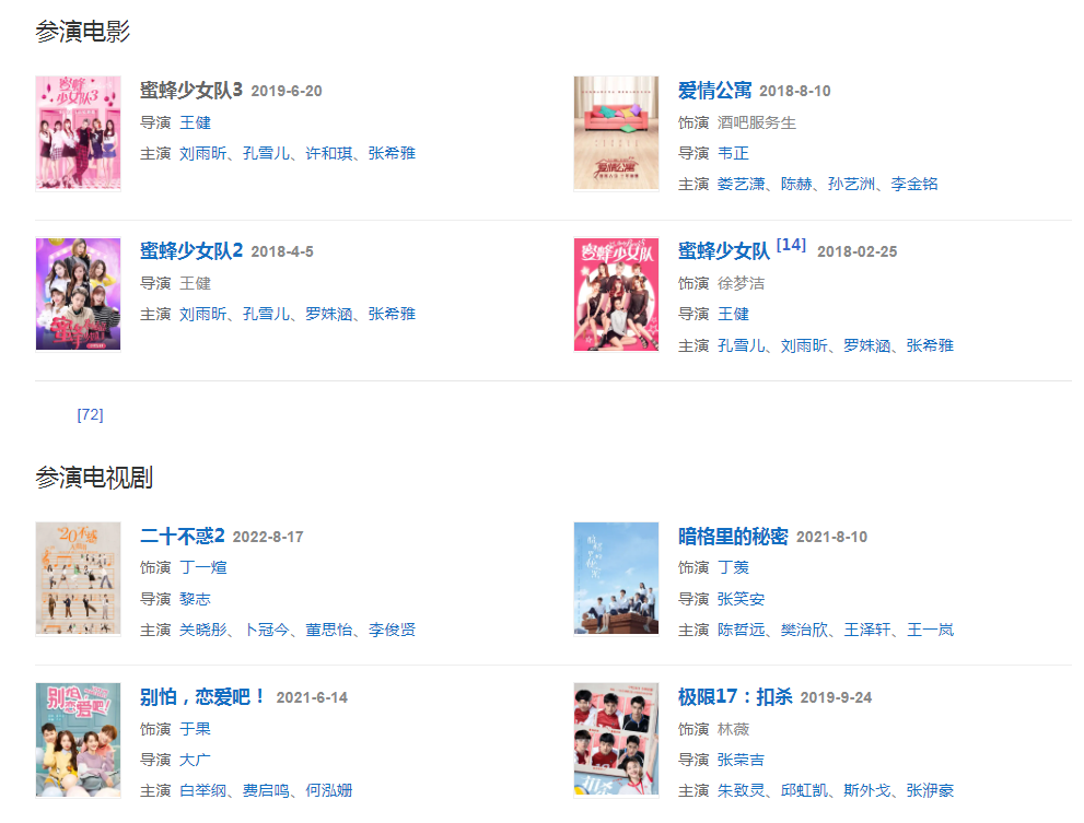 代表作品:暗格里的秘密、二十不惑2、卡路里