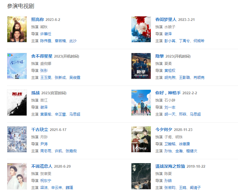 代表作品:不說謊戀人、鳳弈、諜戰(zhàn)深海之驚蟄、千古玦塵、今夕何夕、你好,神槍手、照亮你、春閨夢(mèng)里人