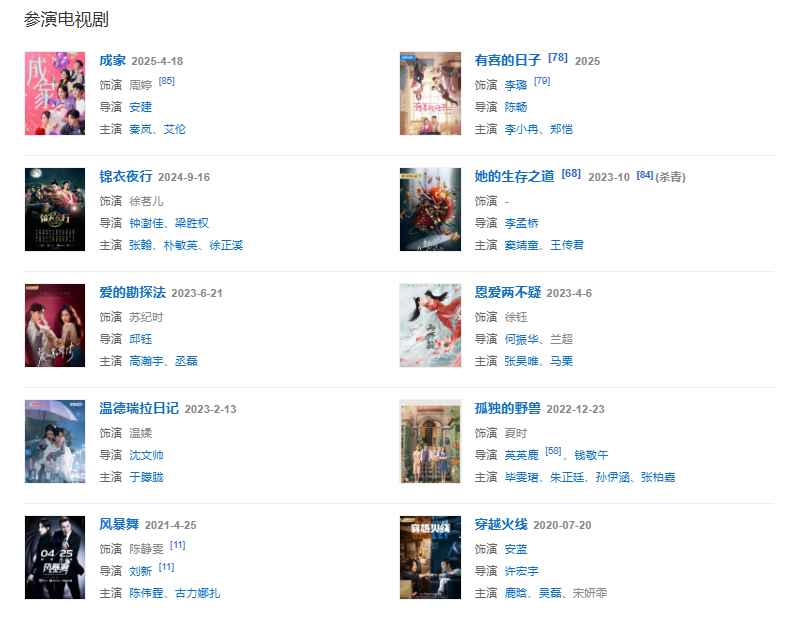 2017年,除了愛情劇《可惜不是你》;她還出演了都市情感劇《戀愛先生》和都市職場劇《十年三月三十日》。