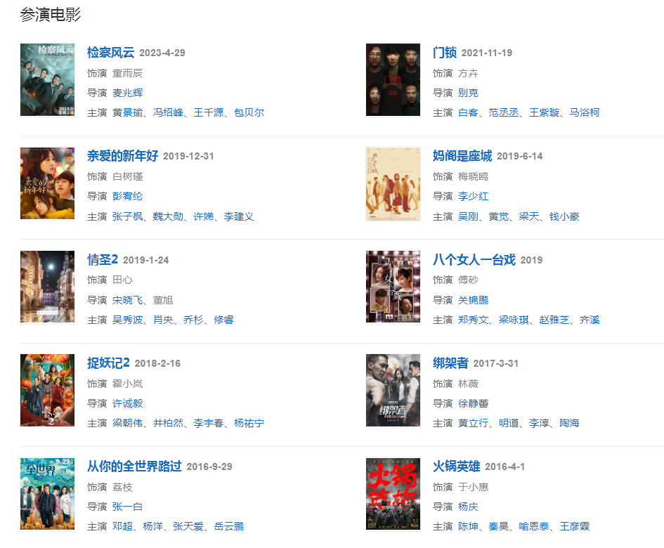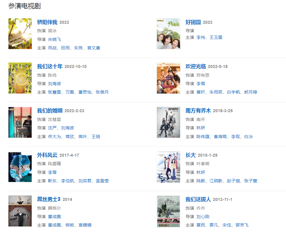 代表作品:失戀33天、捉妖記、滾蛋吧!腫瘤君、私人訂制、分手合約、被偷走的那五年、浮沉、長大、外科風(fēng)云