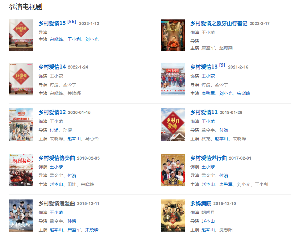 2022年,參演電視劇《鄉(xiāng)村愛情14》;參演電視劇《鄉(xiāng)村愛情之象牙山行善記》。