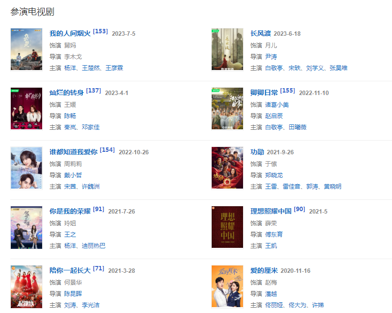 作品京華:煙云、如懿傳、扶搖、加油,你是最棒的、三叉戟、你是我的榮耀