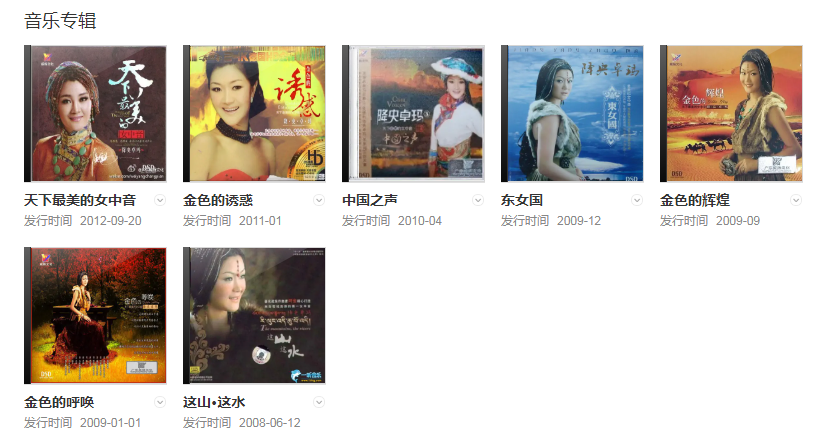 20091月,發(fā)行音樂專輯《金色的呼喚》;同年9月推出專輯《金色的輝煌》;12月發(fā)行音樂專輯《東女國》。