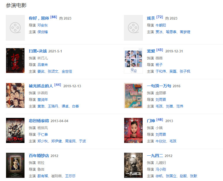 代表作品:大唐雙龍傳、龍門鏢局、春江英雄之秀才遇到兵、暗黑者、天下糧倉(cāng)、我們生活的年代