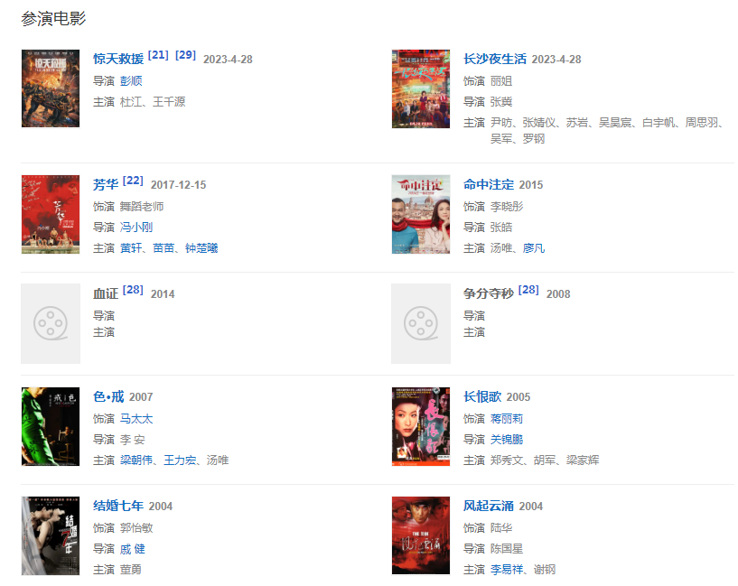 2007年,在李安導(dǎo)演的《色,戒》中出演“馬太太”一角。