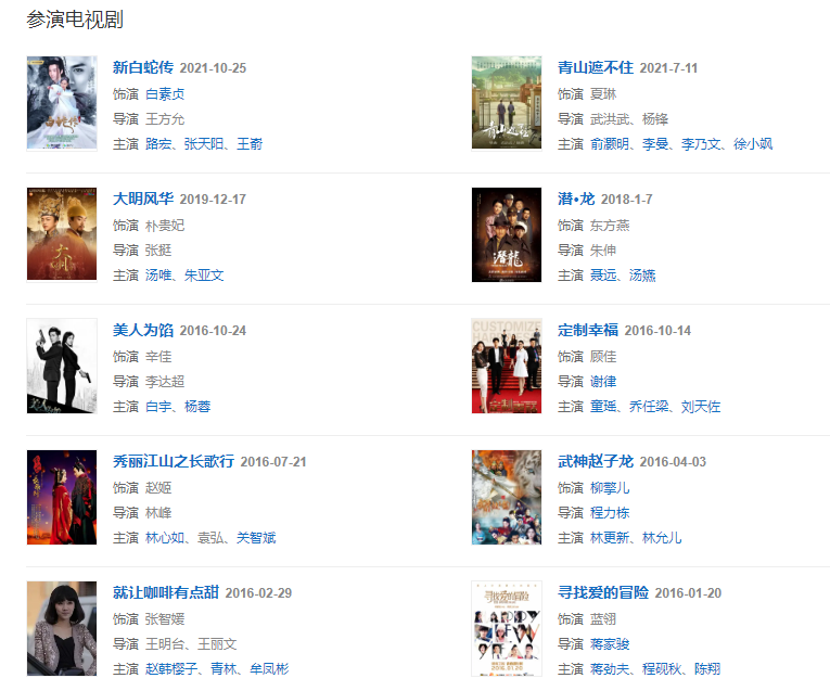 2021711日,領(lǐng)銜主演的年代勵志情感劇《青山遮不住》首播;1025日,與路宏共同主演的古裝愛情神話劇《新白蛇傳》開播 。