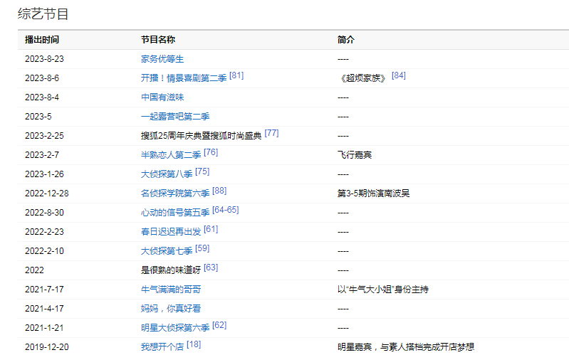 2022126日,參加的《大偵探第七季》發(fā)布定檔海報(bào)。  2022年,加盟芒果TV打造的社交觀察類真人秀《春日遲遲再出發(fā)》。  210日,參與錄制的芒果TV《大偵探第七季》開播。529日,參加的綜藝《是很熟的味道呀》官宣陣容。