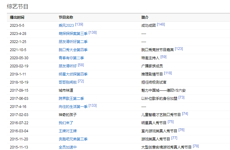 代表作品:快樂大本營、菠蘿菠蘿蜜、百變大咖秀、娜寫年華、十三角關(guān)系、想吃麻花現(xiàn)給你擰