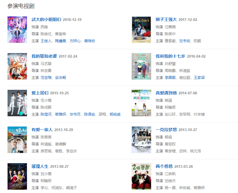 20181219日,主演青春勵(lì)志喜劇《武大的小姐姐們》在優(yōu)酷上線,在劇中飾演西施。