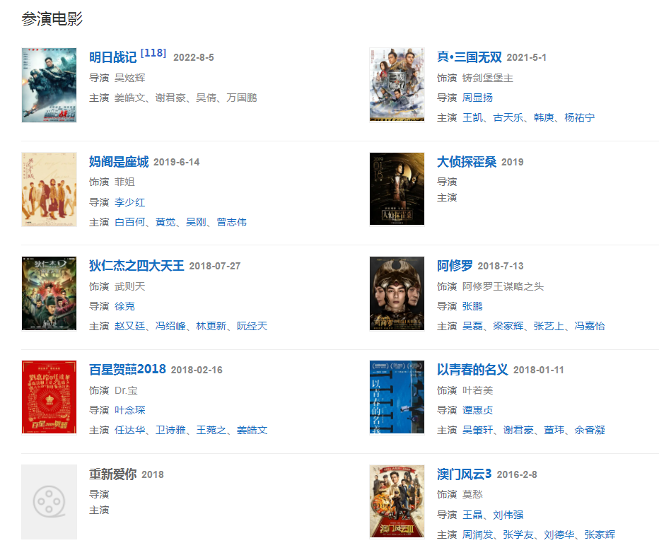 2021429日參與主演的電影《真·三國無雙》在中國香港上映、51日在中國大陸上映;