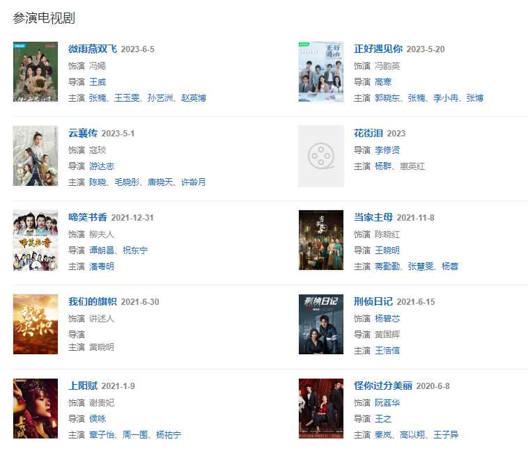 代表作品:長輩、霸王花、血觀音、創(chuàng)世紀、傾世皇妃、心魔、鐵探、不完美的她、僵尸、結婚那件事