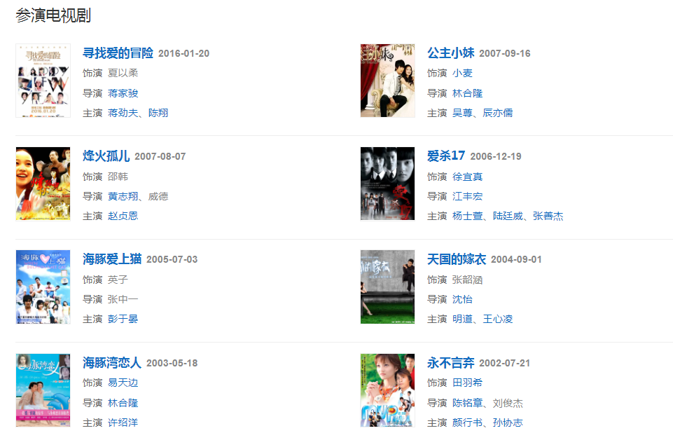 2003年,在愛情勵志偶像劇《海豚灣戀人》中飾演女主角易天邊。
