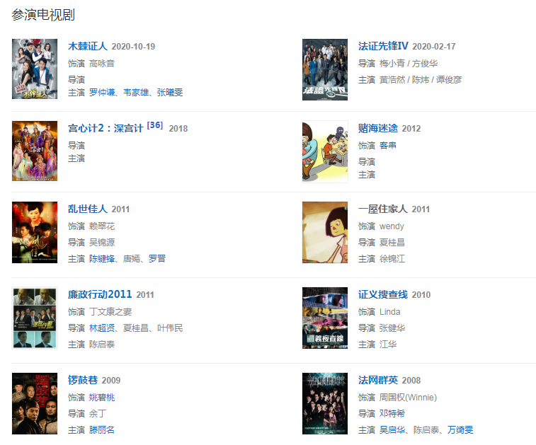 2005年參加《情陷夜中環(huán)》系列電視劇的拍攝。