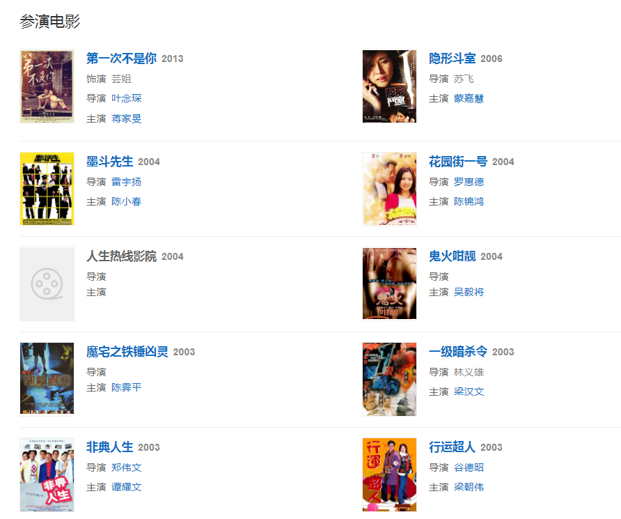 代表作品:胭脂水粉、點(diǎn)金勝手、MyLady、法網(wǎng)狙擊、怒火街頭、搜下留情、美麗高解像、東方之珠