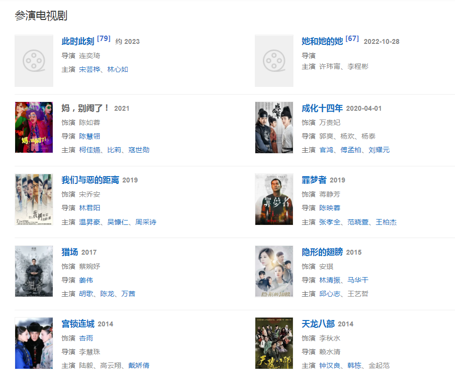 2023年3月,參演臺劇《此時(shí)此刻》。5月5日,參與的《乘風(fēng)2023》在芒果TV、咪咕視頻播出。6月29日,參加《“灣區(qū)升明月”2023大灣區(qū)電影音樂晚會(huì)》。