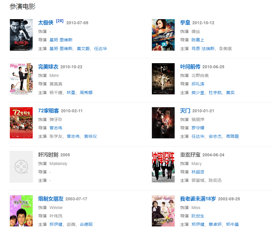 2008年,參演根據(jù)游戲改編的電影《拳皇》,飾演薇絲,成為首位拍攝好萊塢電影的無(wú)線花旦,影片無(wú)緣美國(guó)上映。
