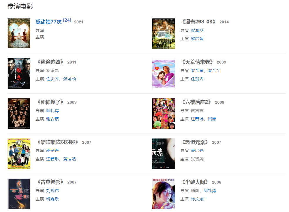 2021年,參演電影《感動她77次》。