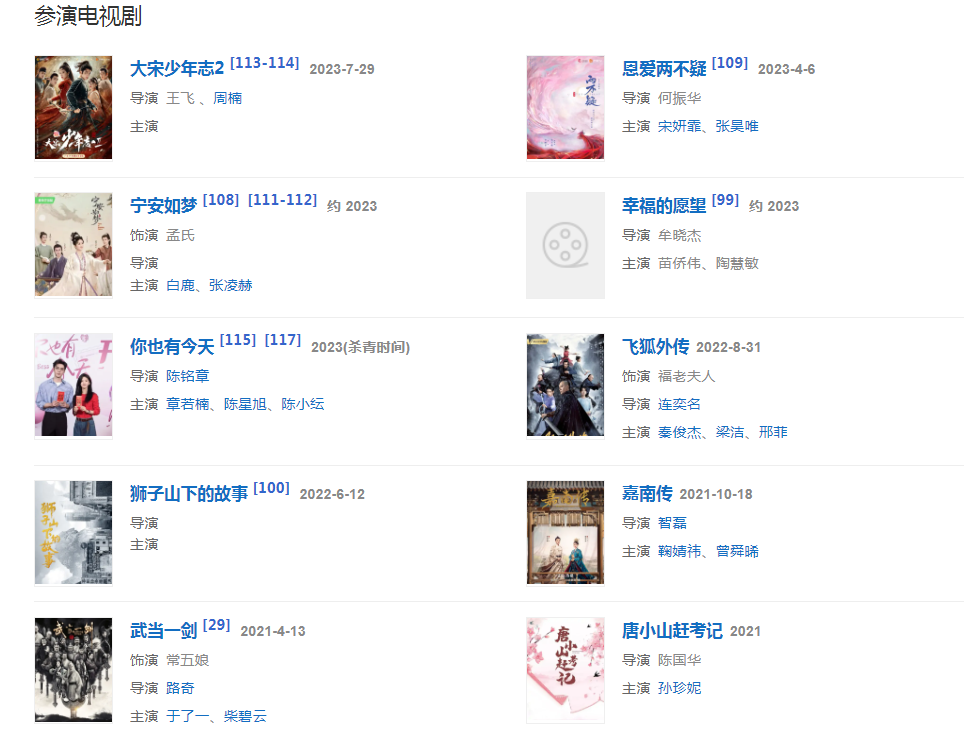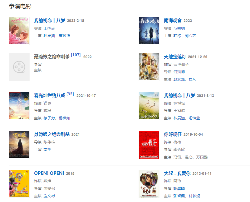 2023218號(hào),主演的青春電影《我的初戀十八歲》上映,在片中飾演中年林悅怡;46日,主演的電視劇《恩愛兩不疑》播出。729日,參演的電視劇《大宋少年志2》播出。