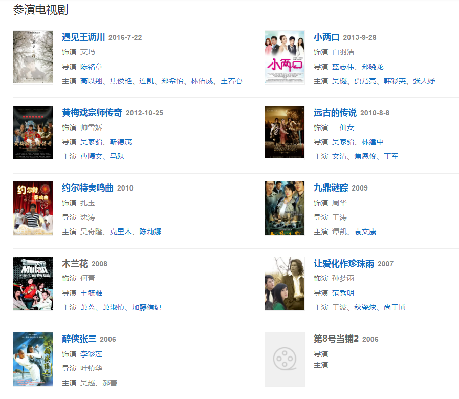 2001年拍攝電影《幽谷約會(huì)》。同年在武俠劇《風(fēng)云》中飾演孔慈和演員何潤(rùn)東合作。