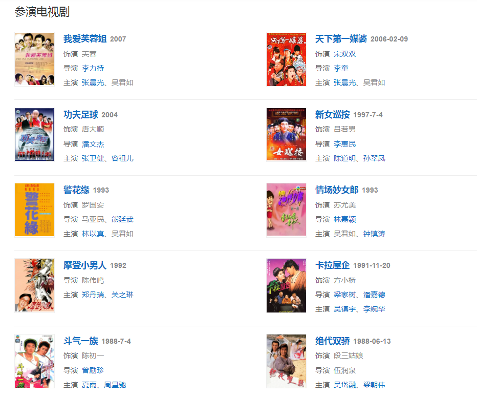 吳君如16歲進入無線電視藝員訓練班,畢業(yè)之后在TVB參演電視劇,