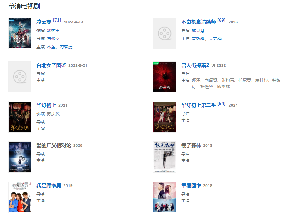 2015年,主演臺(tái)灣年代劇《一把青》獲得金鐘獎(jiǎng)女主角提名  。