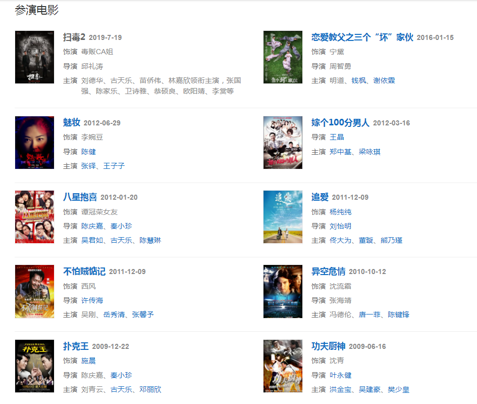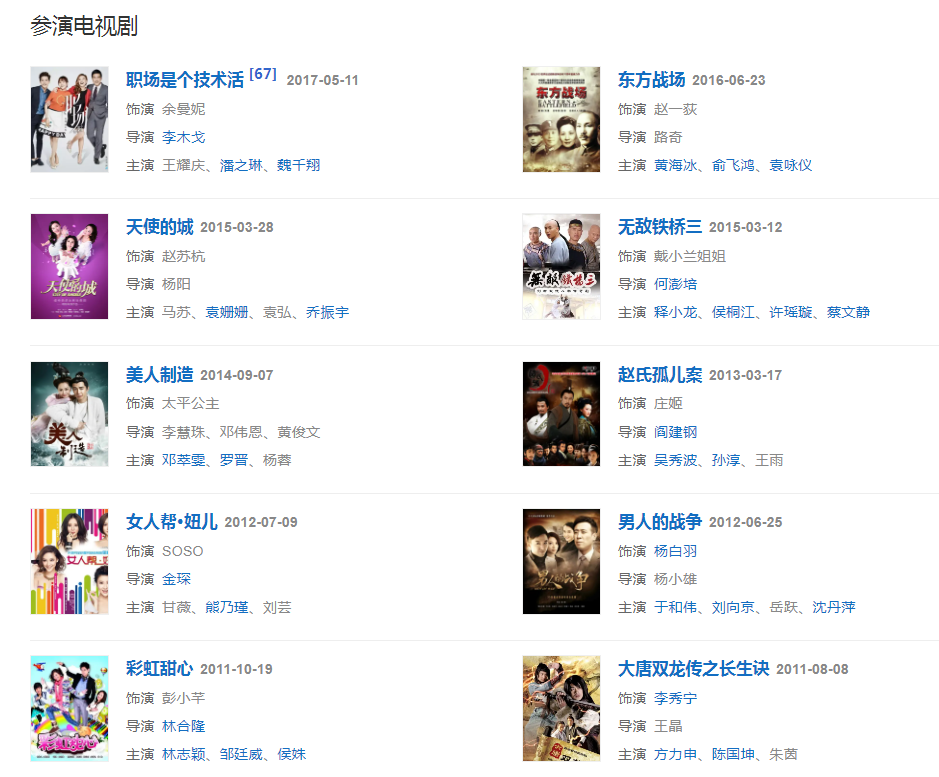 代表作品:鹿鼎記、鳳穿牡丹、大捕房、我的失憶男友、追愛、趙氏孤兒案、天使的城、職場是個(gè)技術(shù)活、真心大冒險(xiǎn)