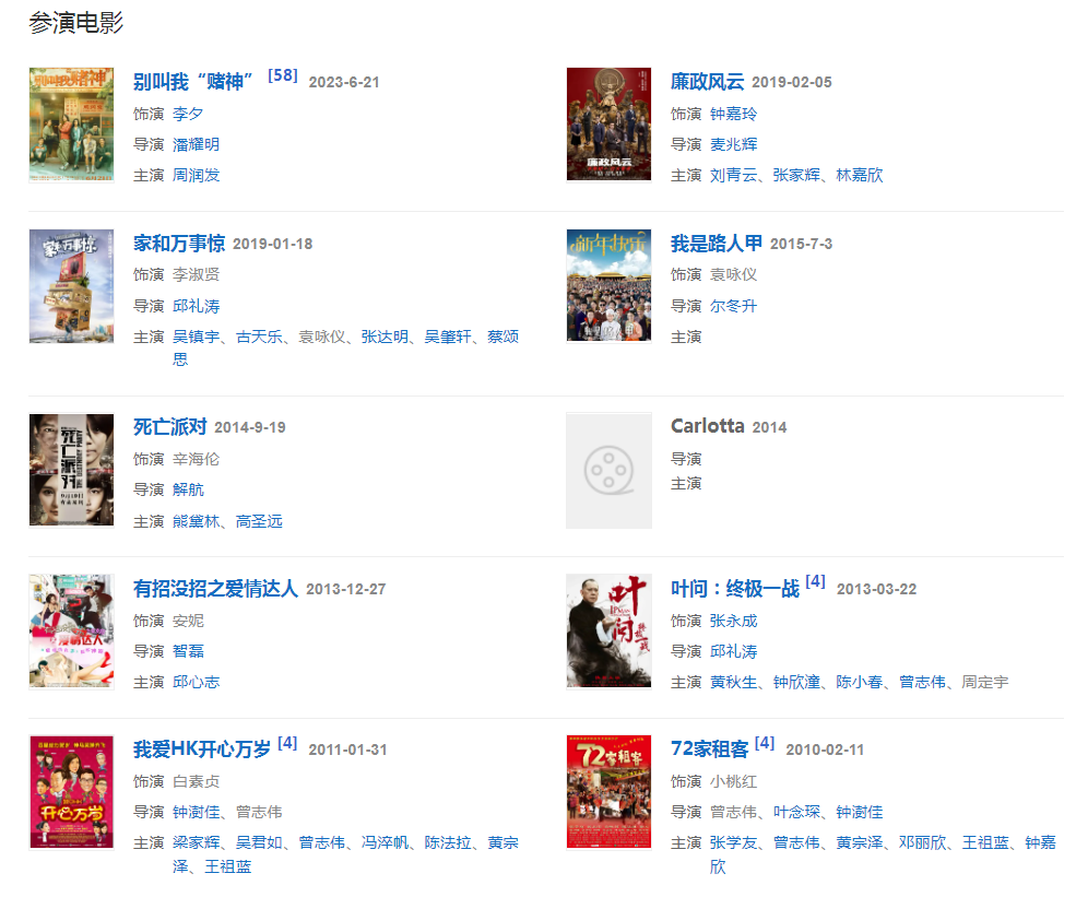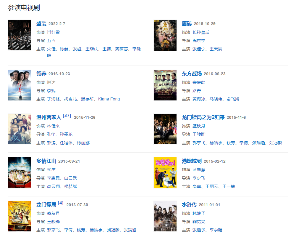 代表作品:新不了情、金枝玉葉、花木蘭、國(guó)產(chǎn)凌凌漆、龍門(mén)鏢局