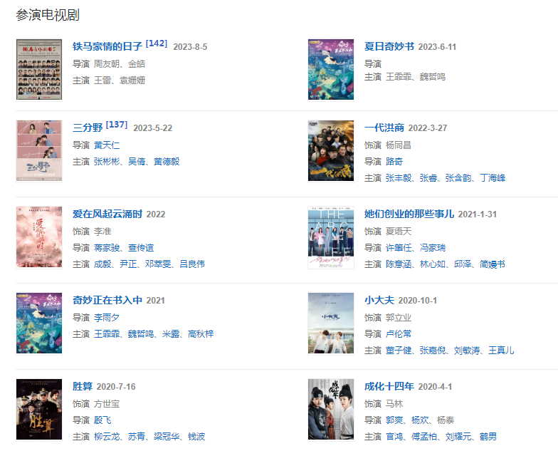 202041日,參演的古裝輕喜劇《成化十四年》播出,在劇中飾演馬林;5月,特別出演的年代傳奇勵志劇《塞上風(fēng)云記》在張家口電視臺新聞頻道黃金時段播出;同年,在蔣家駿執(zhí)導(dǎo)的《愛在風(fēng)起云涌時》中飾演李準(zhǔn)。