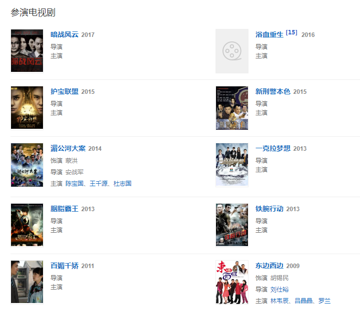 代表作品:公仆、喋血雙雄、龍虎風云、兄弟