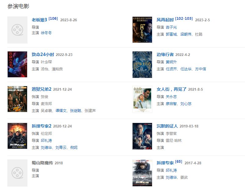20201224日,主演的動(dòng)作犯罪電影《拆彈專(zhuān)家2》上映。