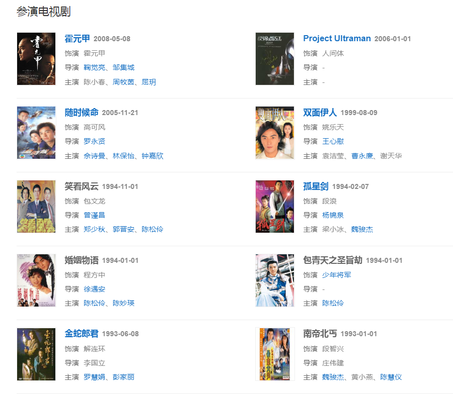 19977月主演電影《風(fēng)云雄霸天下》飾演聶風(fēng)一角。