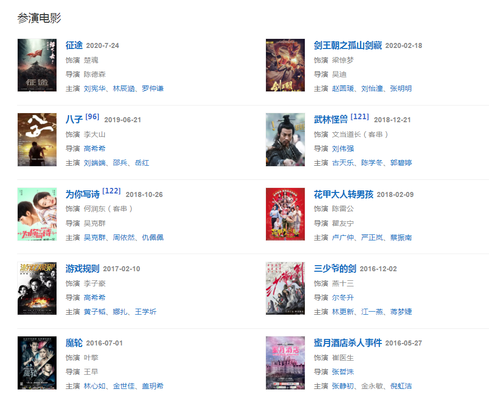 代表作品:風(fēng)云、一米陽光、玉觀音、三國、楚漢傳奇、臥虎藏龍、泡沫之夏、那年花開月正圓、三少爺?shù)膭?、我記得我愛過、沒有我你怎么辦、好想對你說、梁山伯與祝英臺、花謝花飛花滿天、馬上天下、美麗的秘密