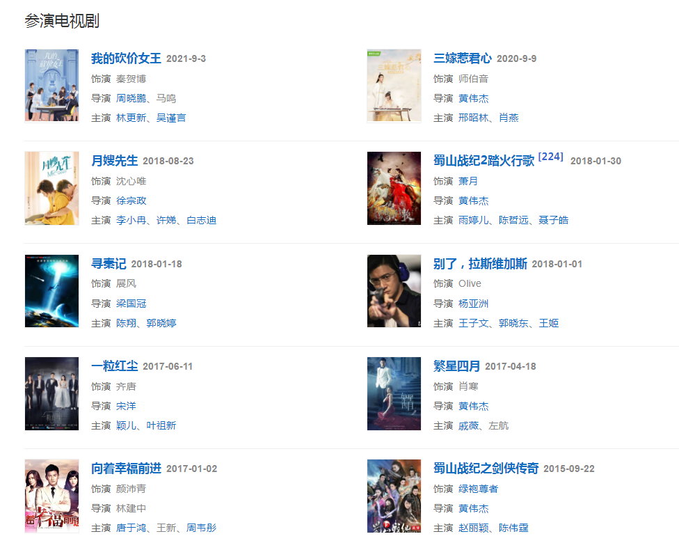 2003年成立北京稻草熊影視文化有限公司,參與《墨攻》等電影制作,投資出品了情感劇《完美丈夫》、抗日劇《不可能完成的任務(wù)》,出品并主演了武俠劇《新白發(fā)魔女傳》《蜀山戰(zhàn)紀(jì)之劍俠傳奇》、都市倫理劇《繁星四月》等戲劇。他還涉足影視游戲制作、餐飲 、房地產(chǎn)、服飾等行業(yè);擁有9家個(gè)人公司、2個(gè)工作室和3項(xiàng)專利。