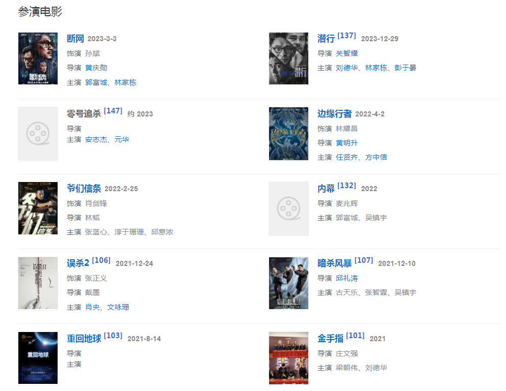 2022225日,主演的電影《爺們信條》全國公映,在片中飾演昔日大哥肖劍鋒;42日,與任賢齊、方中信等主演的犯罪嫌疑電影《邊緣行者》上映,在片中飾演黑幫龍頭林耀昌;99日,參演電影《重回地球》,同日,主演網(wǎng)絡(luò)金融犯罪片《斷網(wǎng)》,飾演高級警官孫斌。7月,參演的電影《潛行》官宣陣容曝先導(dǎo)海報(bào) 。 9月,擔(dān)任橫店影視節(jié)第九屆“文榮獎(jiǎng)”評委。 9月17日,參演電影《老家伙》在廣東開機(jī)。9月,主演電影《燈火闌珊》。11月10日,將擔(dān)任2022電影頻道“星辰大海”采風(fēng)創(chuàng)作活動指導(dǎo)老師。