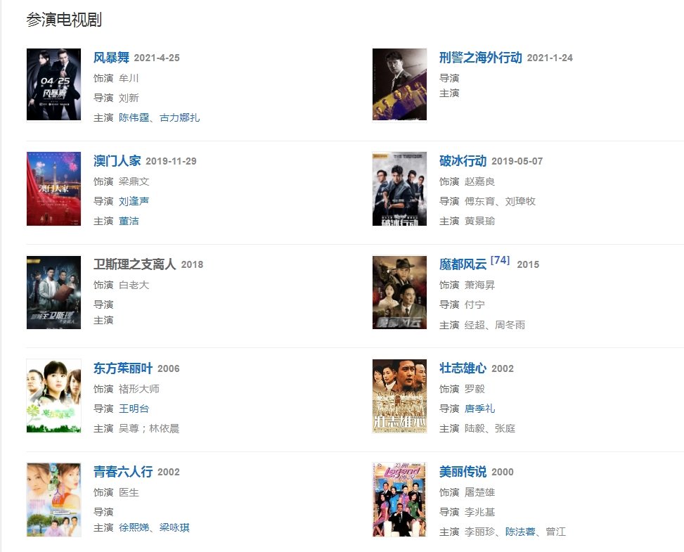 2019年,主演現(xiàn)實(shí)主義題材劇《澳門人家》;57日,參演的緝毒題材劇《破冰行動》在愛奇藝播出。