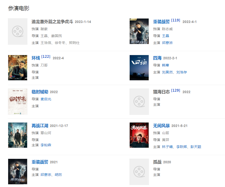 2023年1月14日,主演的動作電影《追龍番外篇之龍爭虎斗》在愛奇藝云影院獨家上映,在片中飾演跛豪 ;