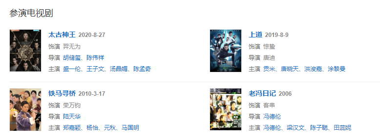 2020117日,參加2020央視網(wǎng)絡(luò)春晚,表演功夫秀《龍的傳人》;827日,主演的古裝玄幻劇《太古神王》開播,在劇中飾演羿無為。