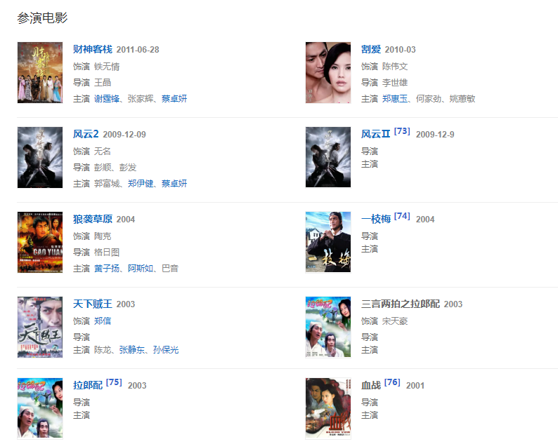 2008年參演玄幻武俠電影《風(fēng)云2》。