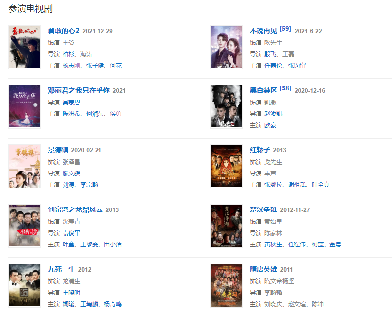 2021622日,現(xiàn)代緝毒劇《不說再見》播出,飾演歐先生;1229日,主演的近代抗日傳奇劇《勇敢的心2》播出  。
