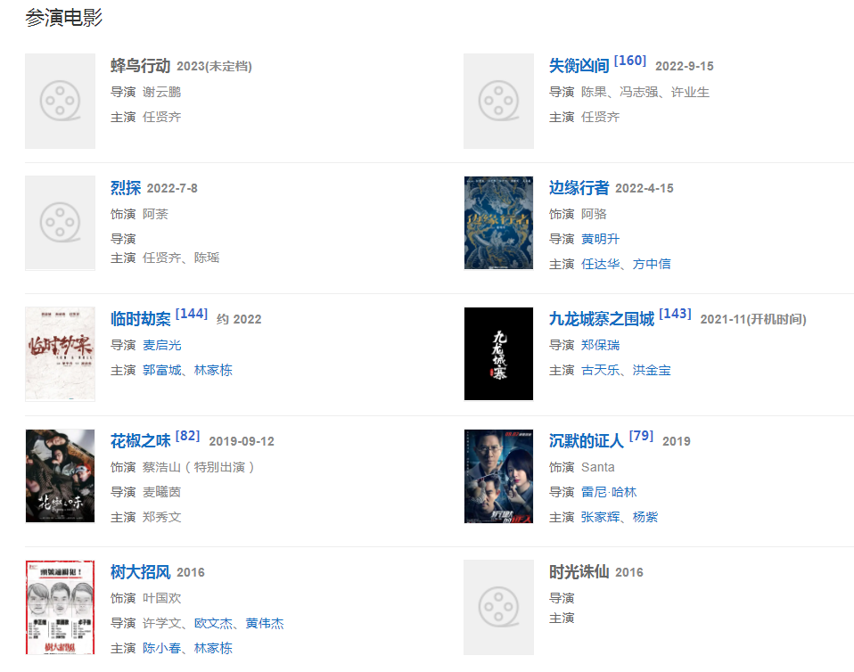 2017年憑借警匪片《樹大招風(fēng)》獲得第36屆香港電影金像獎最佳男主角獎提名;同年參加達喀爾拉力賽  。