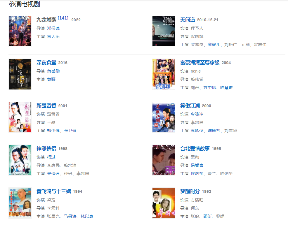 1998年發(fā)行專輯《愛像太平洋》,其中歌曲《對面的女孩看過來》《傷心太平洋》成為其代表作;同年在古裝劇《神雕俠侶》中飾演楊過  。