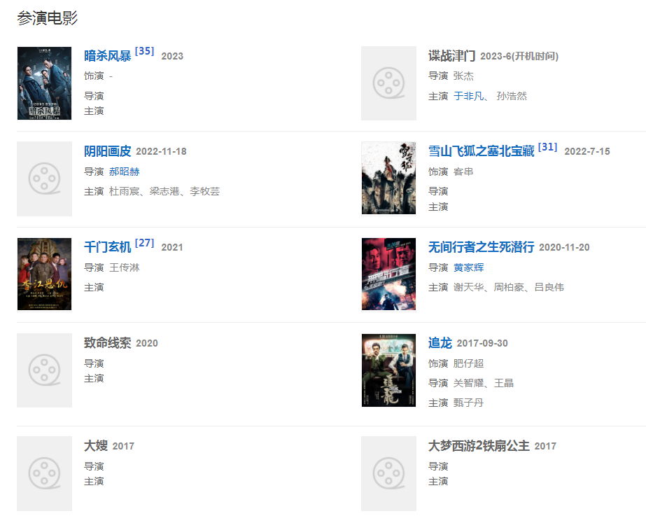 20201120日,出演的電影《無間行者之生死潛行》在愛奇藝全網(wǎng)獨家上線